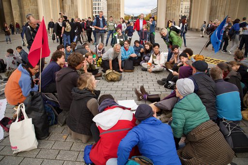 Gleichzeitig mit dieser Inszenierung fand daneben eine offene Versammlung statt die direkte Demokratie üben soll.