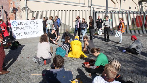 Die klare Bitte an die CSU steht auf einem Banner: "Liebe CSU - Erhalten Sie die Schöpfung" - in Worten, die die christliche Union hoffentlich versteht.