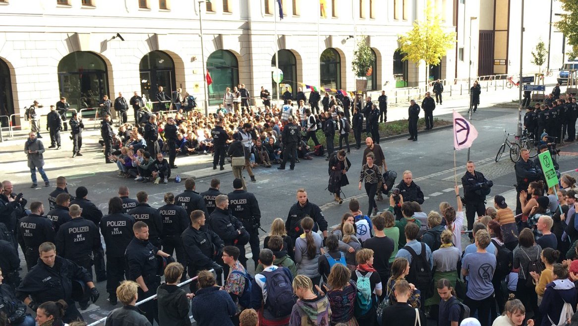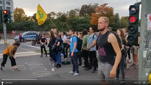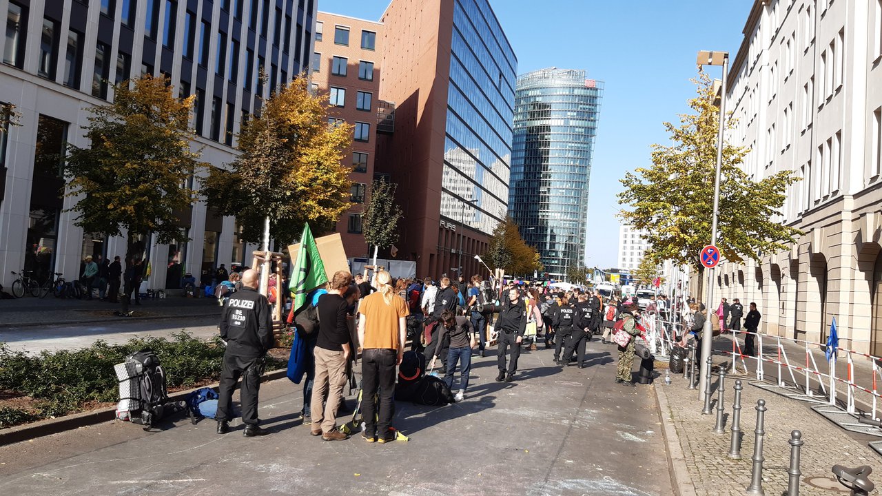 Eine kleinere Extinction-Rebellion-Gruppe von etwa 30 Aktivist:innen schwärmte heute zuerst zum Sachsendamm und dann zum Südkreuz und blockierte dort eine Ampel zur Autobahnauffahrt. Im Gegensatz zum BMU erfolgte die Räumung hier sehr schnell und wohl etwas rabiater. Die Rebell:innen wurden einzeln auf einen Hinterhof geführt, belehrt, Personalien aufgenommen und ihnen mitgeteilt, dass sie Post bekommen werden. Es wurden Platzverweise ausgesprochen.