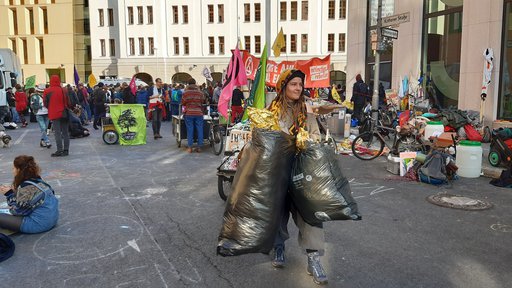 Nach zwei Nächten vor dem Bundesumweltministerium mit offenen Versammlungen, ernsthaften Gesprächen, aber auch lockerer Stimmung, Musik und Gesang, steht die Räumung nun bevor. Währenddessen beginnt - wie immer bei XR - auch das Aufräumen.