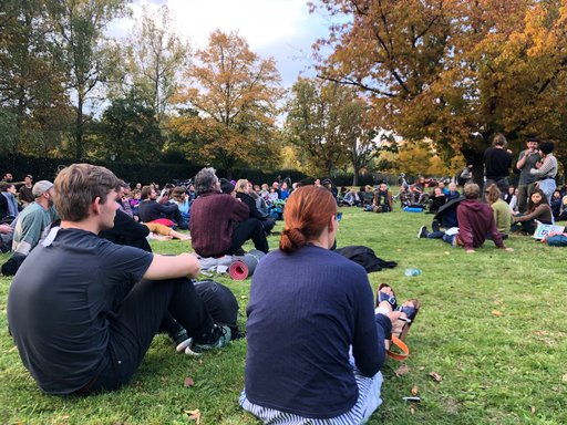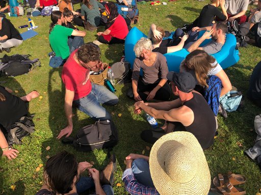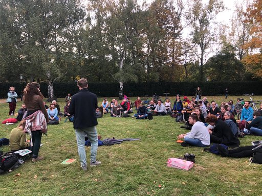 Rebell:innen waren heute herzlich eingeladen, an einer offenen Versammlung teilzunehmen und zu regenerieren. Um einen entspannteren und sicheren Rahmen zu gewährleisten, fand es am Sowjetdenkmal im Tiergarten statt. Diskutiert wurde über die Zukunft von XR in den nächsten Tagen, aber auch den nächsten Monaten.