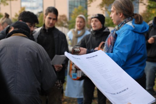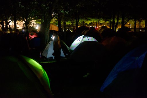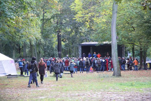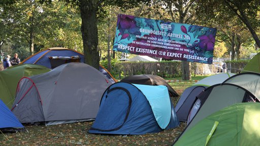 Das Camp steht, die ersten Bewohner:innen sind eingetroffen, die Passant:innen werden neugierig und an der Bühne gibt es die ersten offiziellen Infos. rw