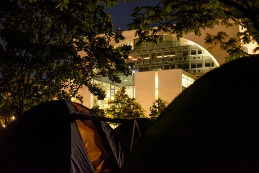9:30 Aufbau des Camps vor dem Kanzlerinnenamt