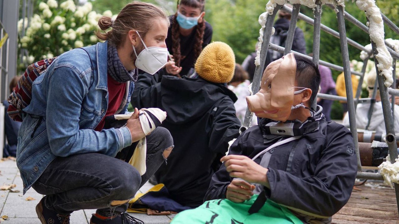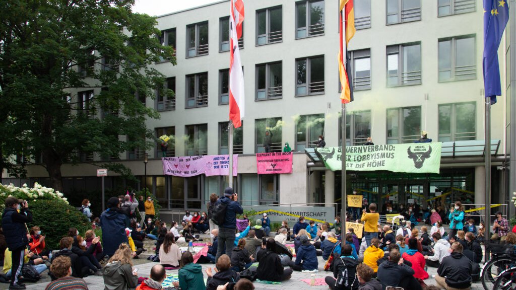Im Zuge der Aktionswoche des Bündnisses AugustRiseUp! hatten am 17. August 2021 etwa 70 Aktivist:innen von Animal Rebellion den Zugang zum Deutschen Bauernverband in Berlin blockiert. Sie kritisierten den Lobbyismus, den der Verband betreibt, um effektiven Klimaschutz zu vereiteln. Sein Generalsekretär Bernhard Krüsken war allerdings nicht in der Stimmung, auf Kritik einzugehen. Stattdessen nahm er Anstoß: "Gebrüll und Schüttelreime - mit diesem unterirdischen Niveau können wir nichts anfangen."