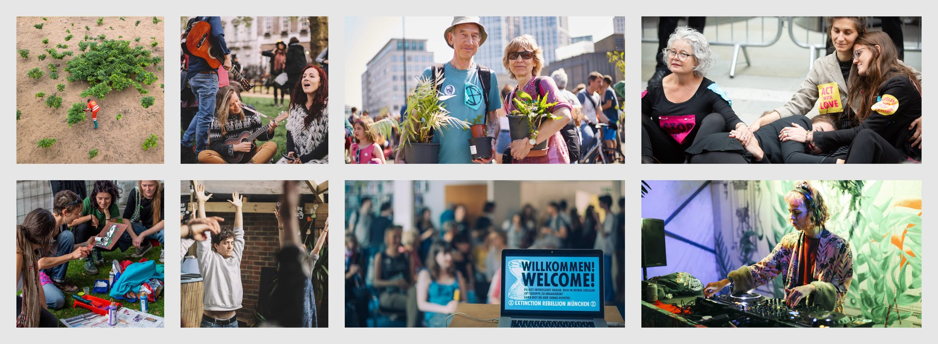 Motive von Aktivitäten wie Treffen, Musik, Vorbereitung, regenerative Kulturen und Transformation.