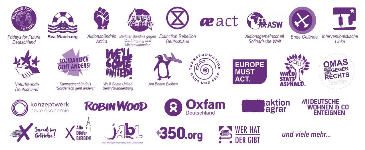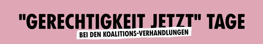 Vom 20. bis 29. Oktober protestieren wir während den Koalitionsverhandlungen in Berlin. Mit einem breiten Bündnis, von Fridays For Future bis Sea-Watch, vom Aktionsbündnis Antira bis Ende Gelände, fordern wir: Gerechtigkeit Jetzt!