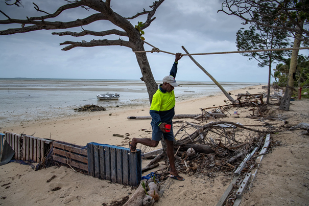 Das Leben der Bewohner*innen der Torres Strait ist unmittelbar an das Land und den Erhalt der Inseln gebunden. Gerade um ihre Kultur ausleben zu können sind die Inseln grundlegend. Beides wird durch die Klimakrise bedroht und schon jetzt kämpfen die Menschen gegen immer stärkere Fluten, erodierende Küstenlinien und Ernteausfälle. Heilige Stätten für Geburts Zeremonien werden überflutet, wie der Priester und Polizist Ned Mosby aus Masig Island berichtet, das habe auch Auswirkungen auf die mentale Gesundheit der Menschen.