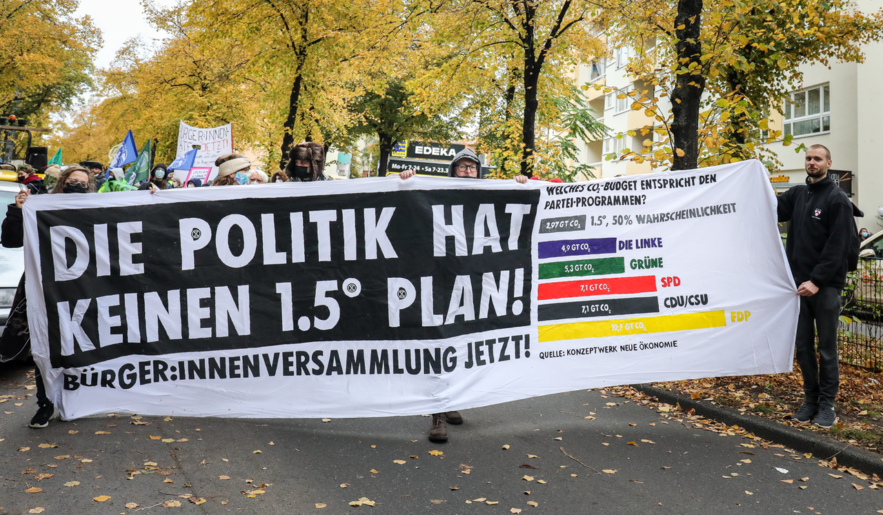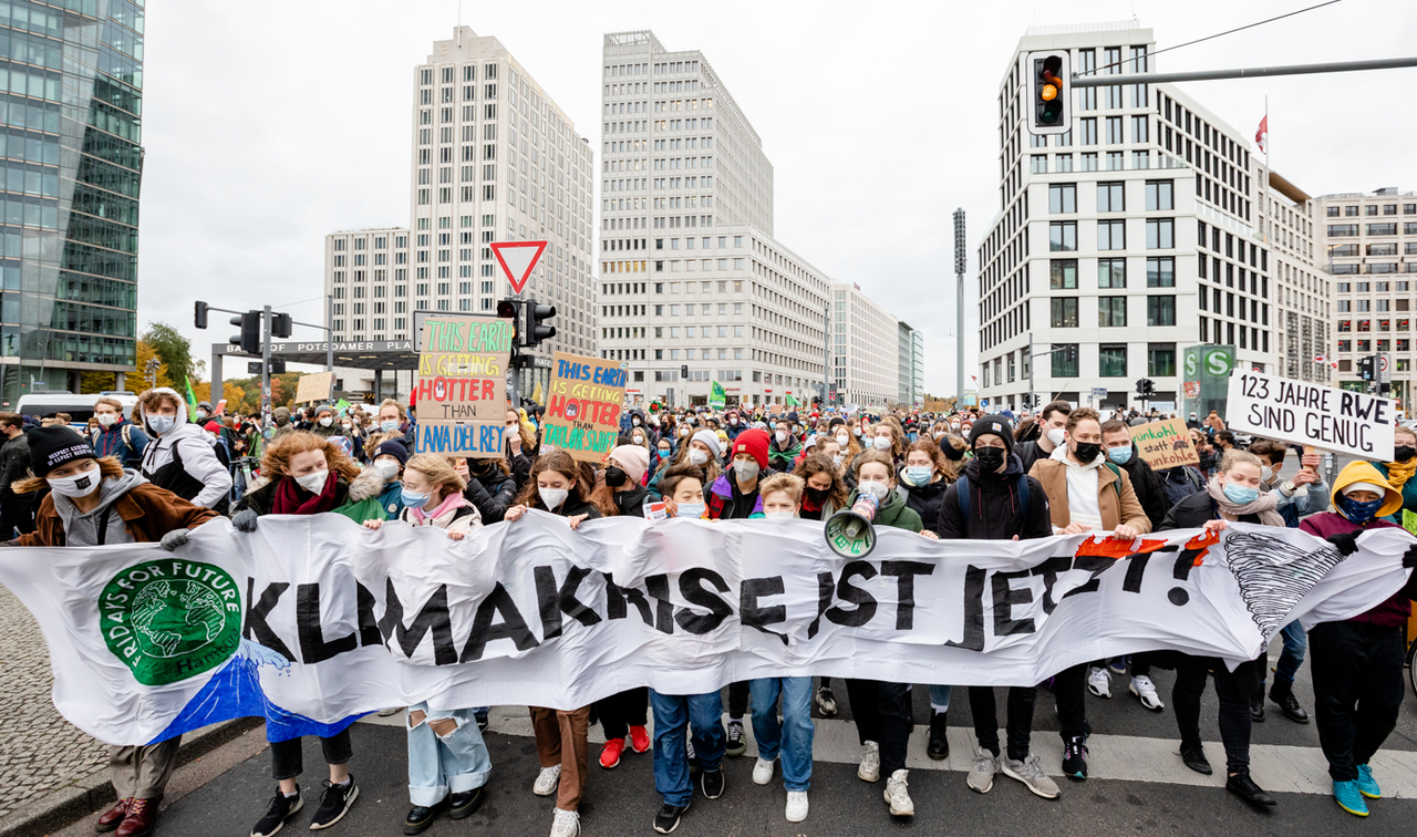 Die Demoroute führte entlang des Willy-Brandt-Hauses – dort wo mit den Koalitionsverhandlungen von SPD, Grünen und der FDP maßgeblich die Politik der nächsten vier Jahre bestimmt wird. Jede der drei Parteien hat sich zur 1,5° Grenze bekannt, aber bei den ersten Sondierungs-Ergebnissen zeigt sich, dass das nichts als leere Worte sind , sobald es um konkrete Maßnahmen geht.