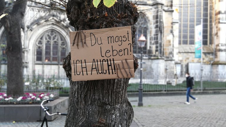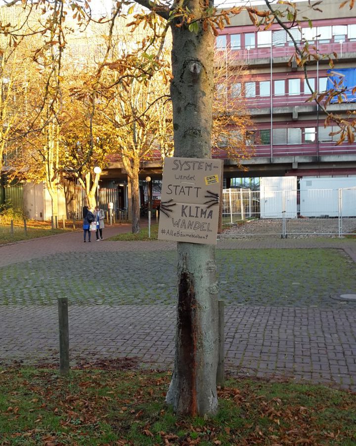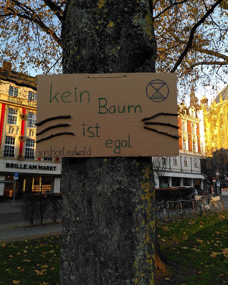 Heute haben wir und andere Menschen in Aachen einen Teil dazu beigetragen, den Bäumen in Aachen, im Dannenröder Wald, in Lützerath und überall auf der Welt eine Stimme zu geben.