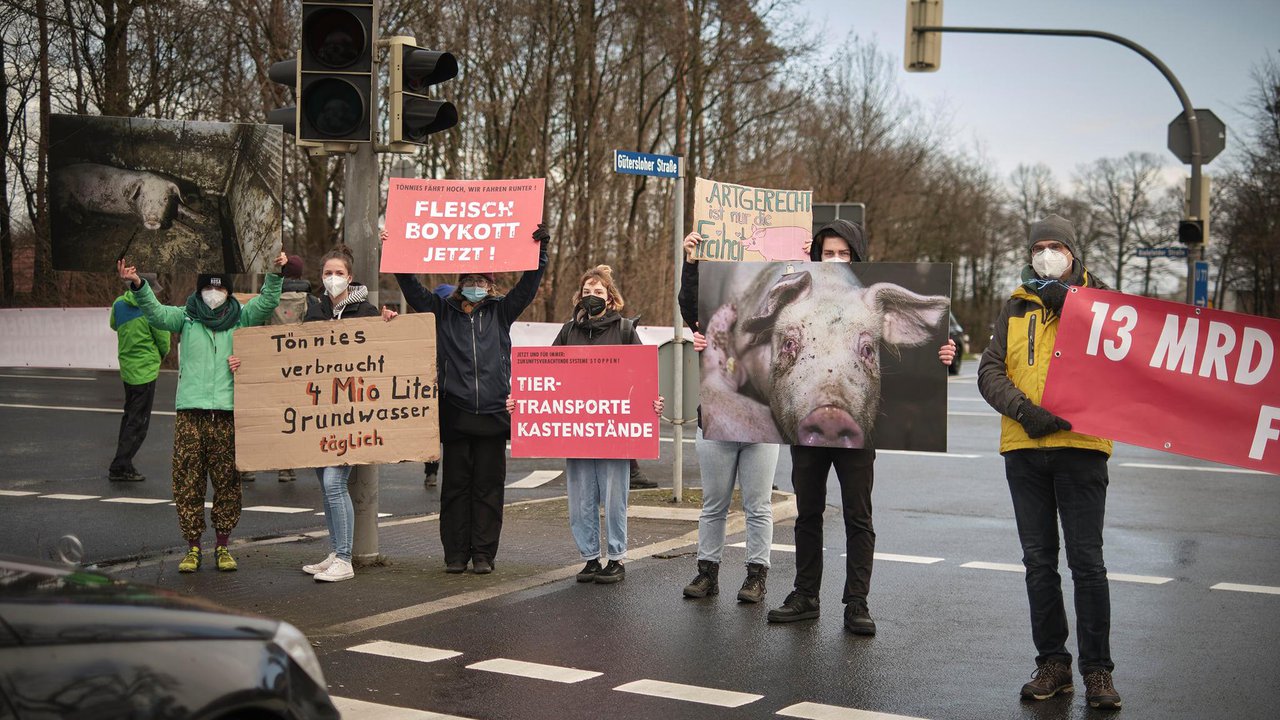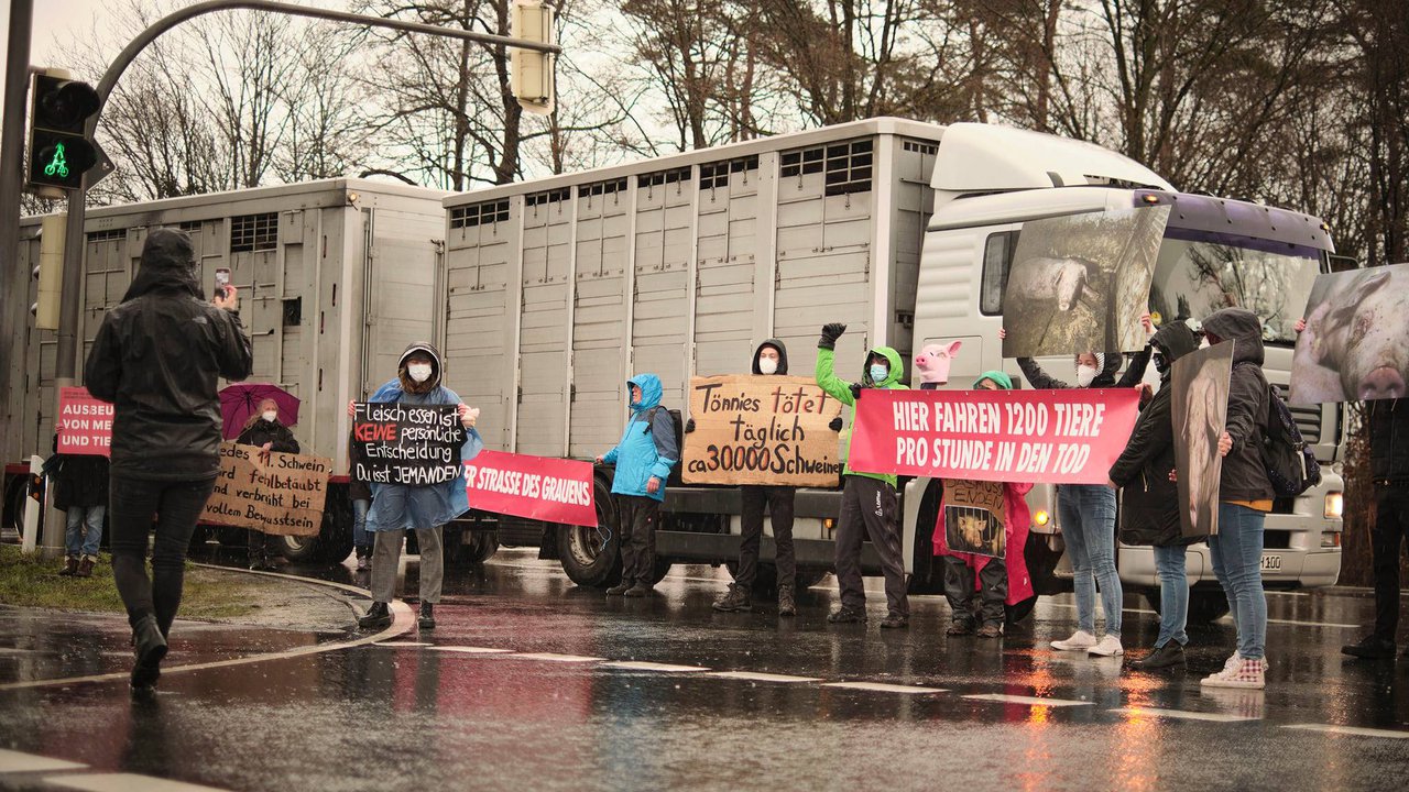 Bei unserer Ampelaktion haben wir gemeinsam mit Bielefeld Animal Save und dem Verein fairleben aus Gütersloh in mehreren Intervallen die "Straße des Grauens" blockiert, welche direkt zur Schlachtfabrik Tönnies führt. Auf diese Weise konnten wir unsere Mitmenschen in den Autos sehr gut erreichen, da sie buchstäblich dazu angehalten wurden, das unermessliche Leid, welches sogenannten "Nutztieren" in unserer Gesellschaft angetan wird, zu überdenken. Es waren sehr bewegende Momente für uns, denn die einfahrenden Transporter konnten wir letztlich nicht davon abbringen ihren Weg fortzusetzen. Doch wir werden uns weiter für alle Lebewesen einsetzen, die hier und anderswo unschuldig getötet werden.
