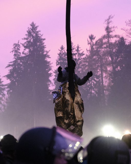 GREENPEACE verwirklichte am 2.12. eine sehr berührenden Aktion: Sie ließ den Star Pianisten Igor Levin im Wald spielen und übertrug das ergreifende Konzert mit Funklautsprechern über die ganze Trasse. Fridays For Future und Parents For Future zogen nochmals zu der Rodungskante und forderten abermals das Ende der Fällungen. Am Samstagmorgen, dem 3.12. zogen dann etwa 250 Menschen von Ende Gelände in der frühen Dämmerung zum letzten Baumhausdorf, das „Oben“ genannt wurde. Die Aktivisten gingen durch den Schnee und kurz darauf wurden sie von der Polizei bei klirrender Kälte mit Wasserwerfern empfangen. Trotzdem gelang es den kleinen Ort hochoben auf der Trasse wieder einzunehmen und die Barrikaden zu verstärken. Am Montag, den 7.12. setzte die Polizei ihr ganzes Personal samt Maschienengewalt ein um die letzten großen Bäume den Fällungen preisgeben zu können. Doch eine Gruppe von Extinction Rebellion hatte sich angekettet, andere hatten sich festbetoniert. So konnte durch die enorme Zähigkeit einer verhältnismäßig kleinen Gruppe an einem weiteren, denkwürdigen Tag dieses große Symbol des Widerstandes vor der brutale Zerstörung geschützt werden.