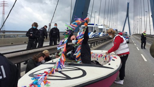 28.05. Erneute Blockade der Köhlbrandbrücke "Wir stören, bis ihr handelt!"