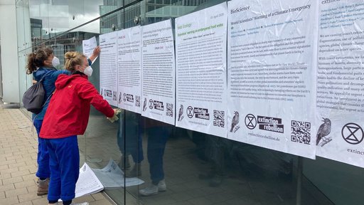 Am ZDF plakatieren die Rebell:innen großformatige wissenschaftliche Artikel zur Klimakrise um zu zeigen, dass es sich bei diesem Thema nicht um eine Meinung, sondern um nachgewiesene Fakten handelt.