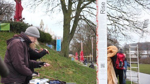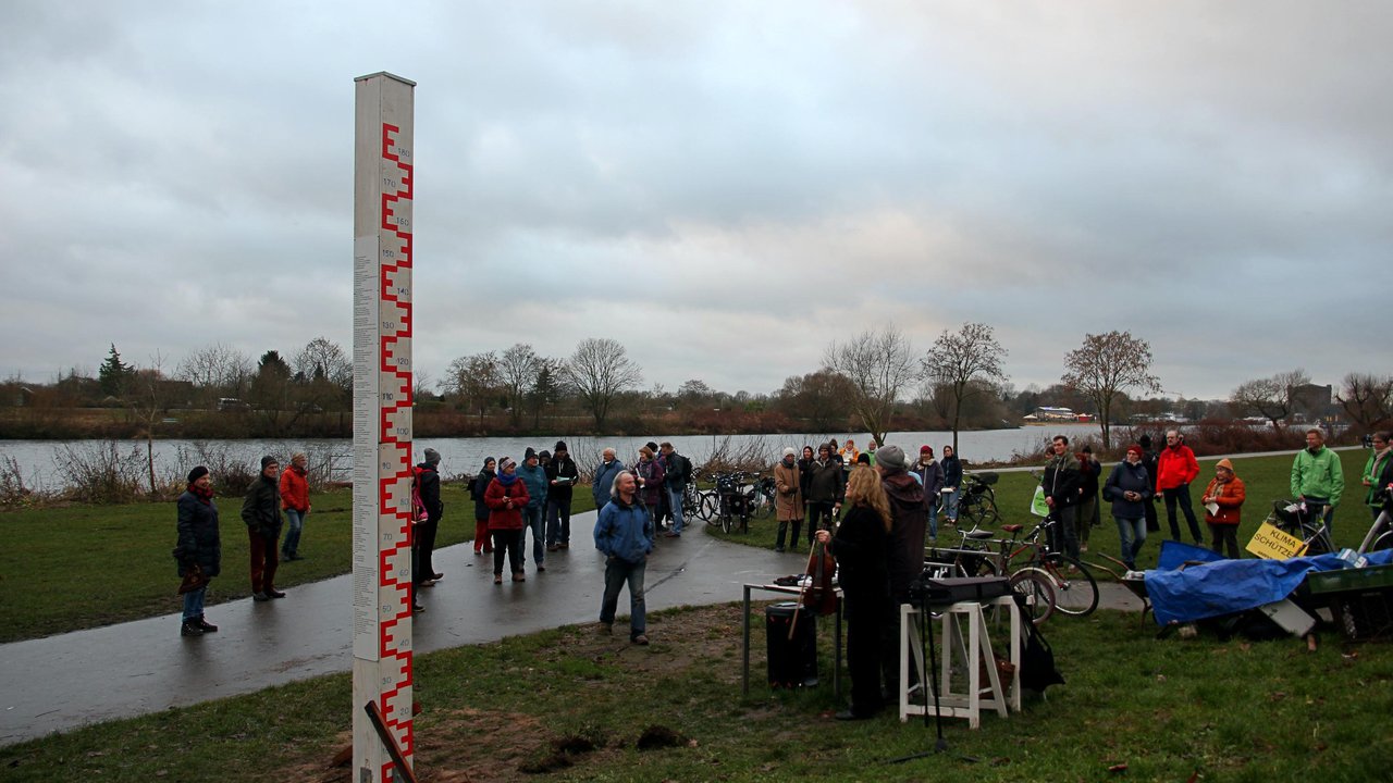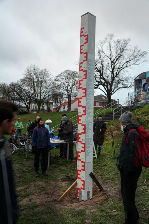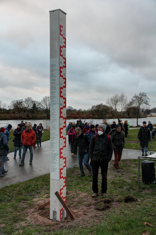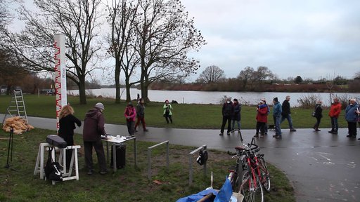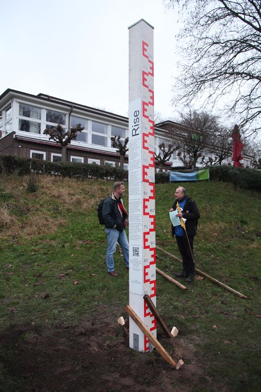 Um dem ein eindrückliches Bildobjekt zu verleihen, werden wir „climart“, unterhalb des Bürgerhauses Weserterrassen einen überdimensionalen Pegelstandanzeiger in den Boden einlassen. Er soll den prognostizierten Wasseranstieg durch die Eisschmelze symbolisieren und auf dessen Aktualität hinweisen.