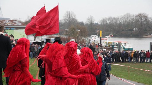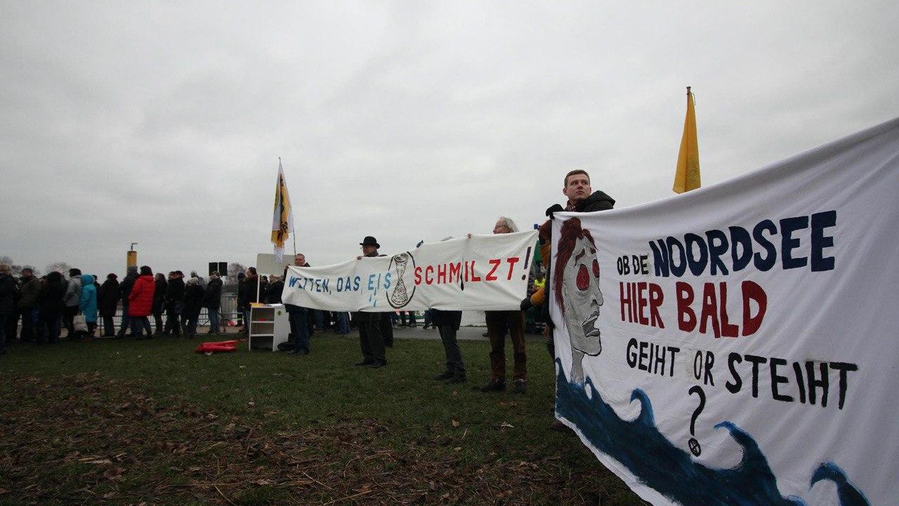 Wetten, ob die Weser eisbedeckt ist? XR Rebellen aus Bremen wetteten dieses Jahr dagegen und nutzten die Gelegenheit, das wartende Publikum und die Presse am Jahresanfang auf das aktuell wichtigste Thema der Menschheit aufmerksam zu machen: Die von Menschen verursachte Klimaerwärmung mit ihren katastrophalen Folgen für uns alle!