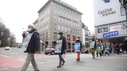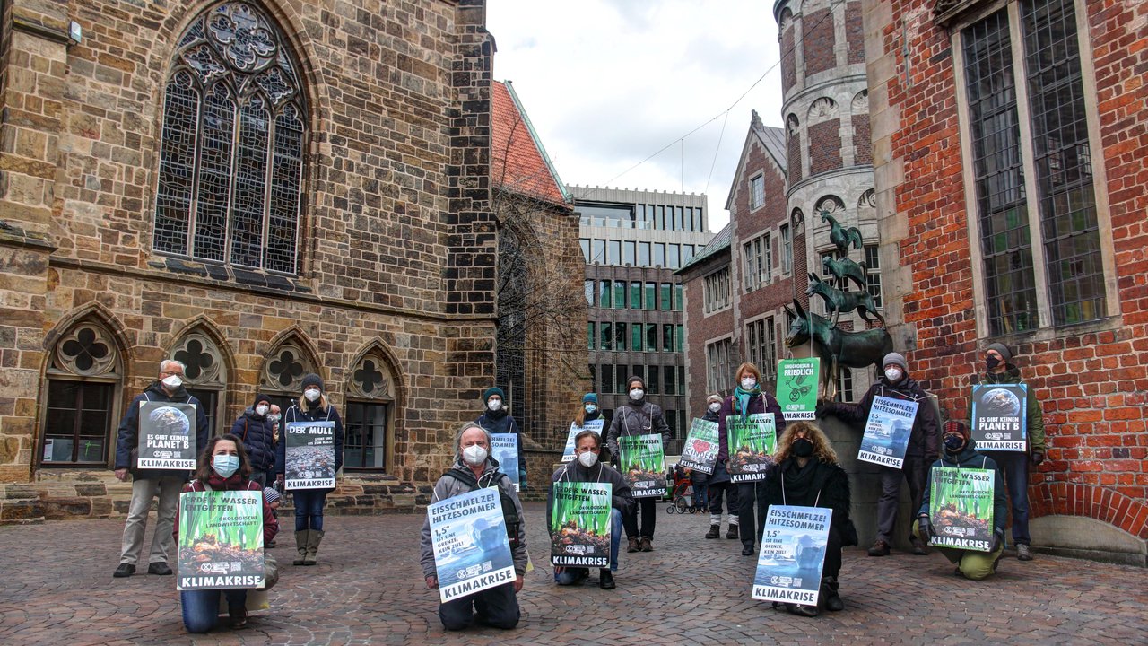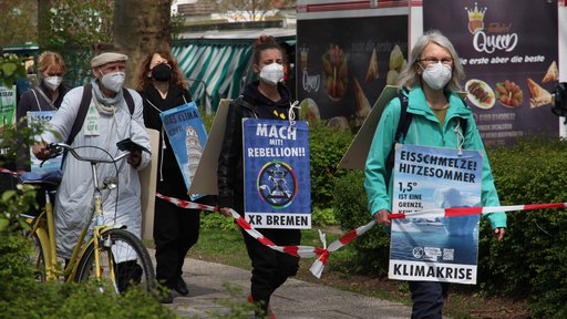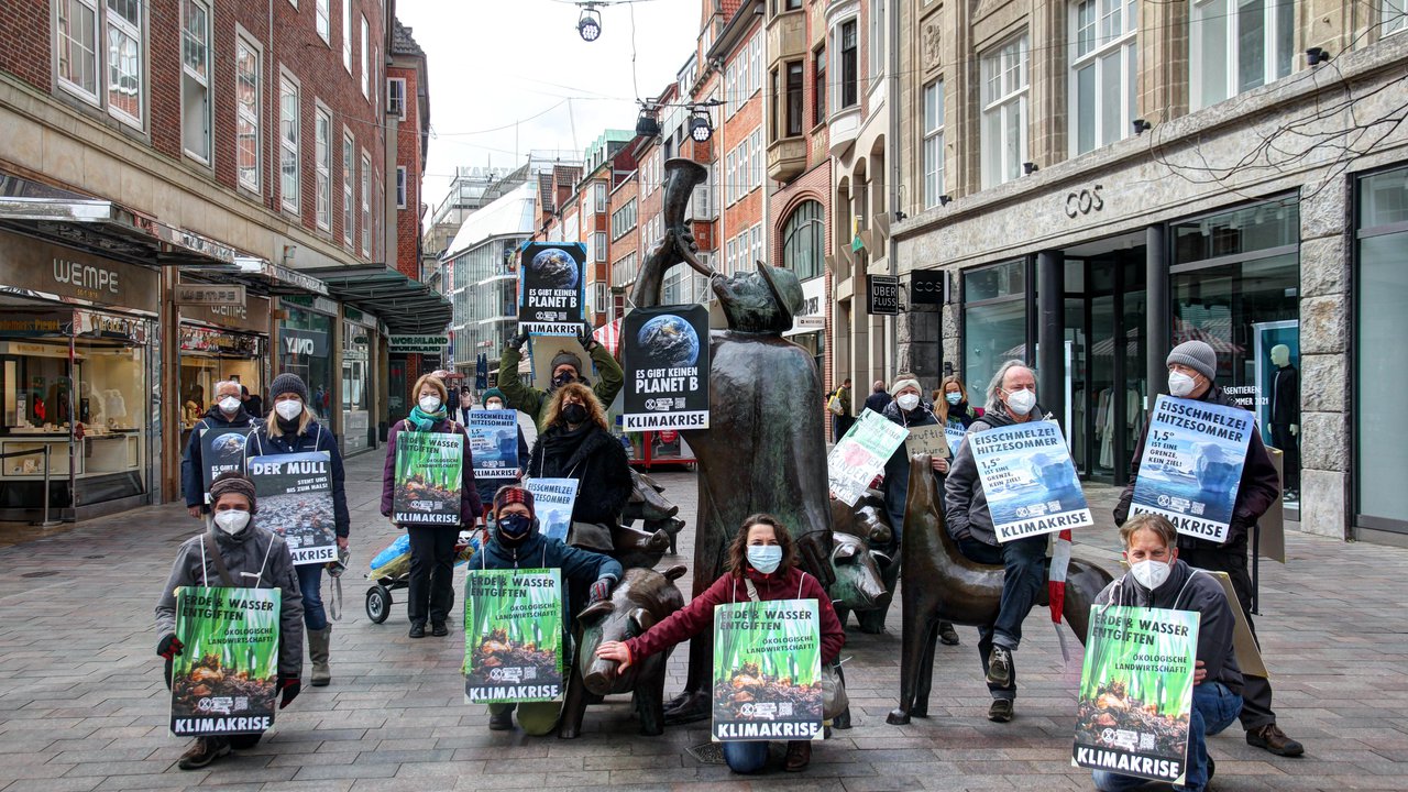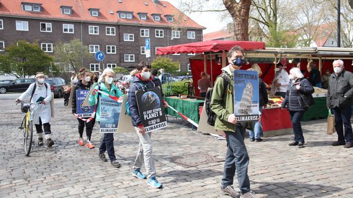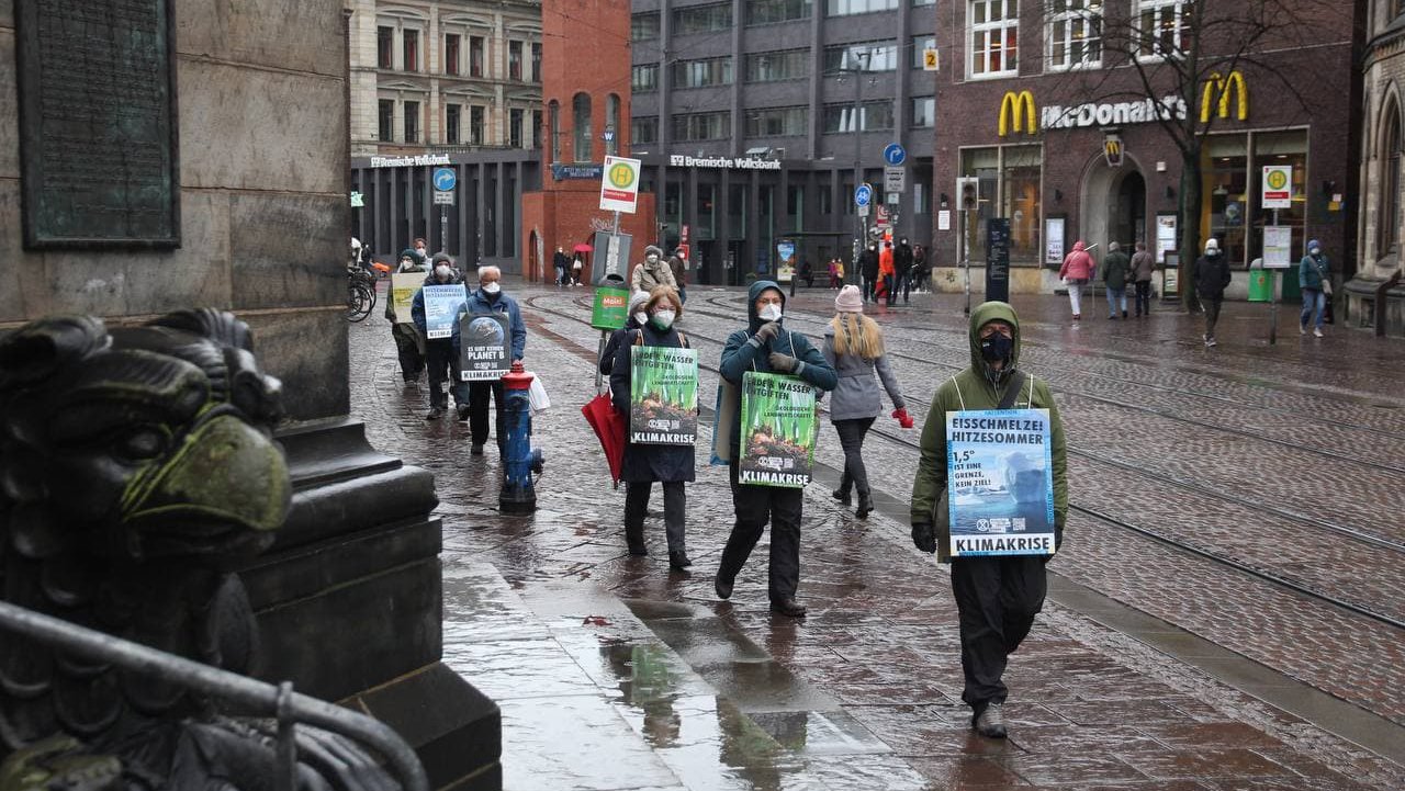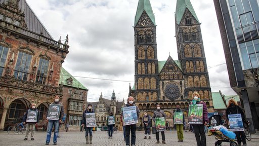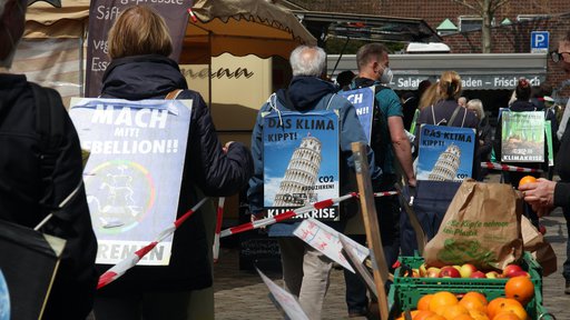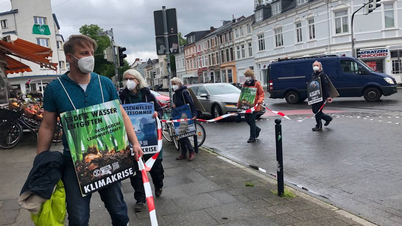 Heute um 12 Uhr startete die zweite Aktion „Klimaspaziergang XR HB“. Vor der Glocke trafen sich 9 Teilnehmer:innen mit umgehängten Sandwiches. Als Polonaise zogen wir mit vorgeschriebenen Abständen über den Domshof-Wochenmarkt und durch zwei Passagen, dann zurück zum Marktplatz. Dort legten wir die Schilder ab und erlebten die beiden RO1-Aktionen. Während unseres Spazierganges war deutlich zu sehen, dass viele Menschen unsere Plakate nachdenklich studierten. Damit war der Zweck der Aktion genau erfüllt. Der Wettergott war uns hold: von allem etwas, aber ganz viele trockene Zeiten. Heute Abend werden wir einen digitalen Rückblick haben und die nächste Aktion planen.
