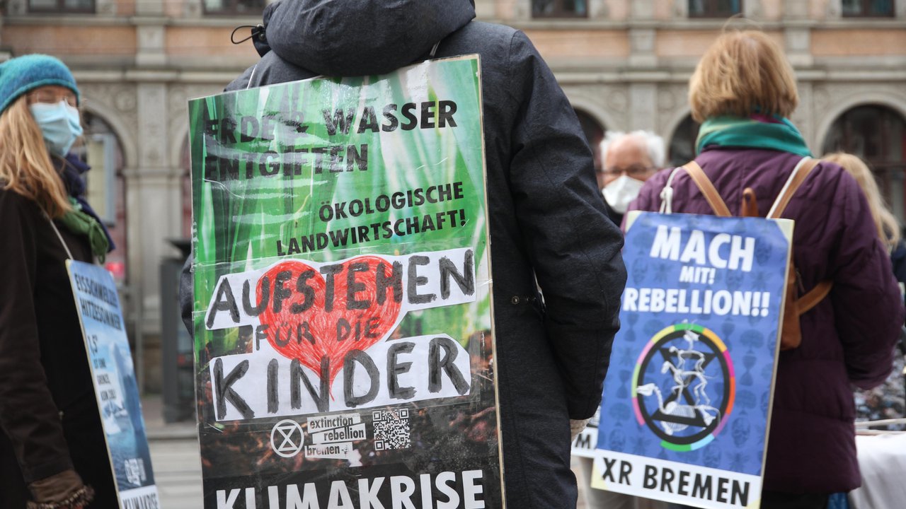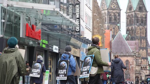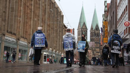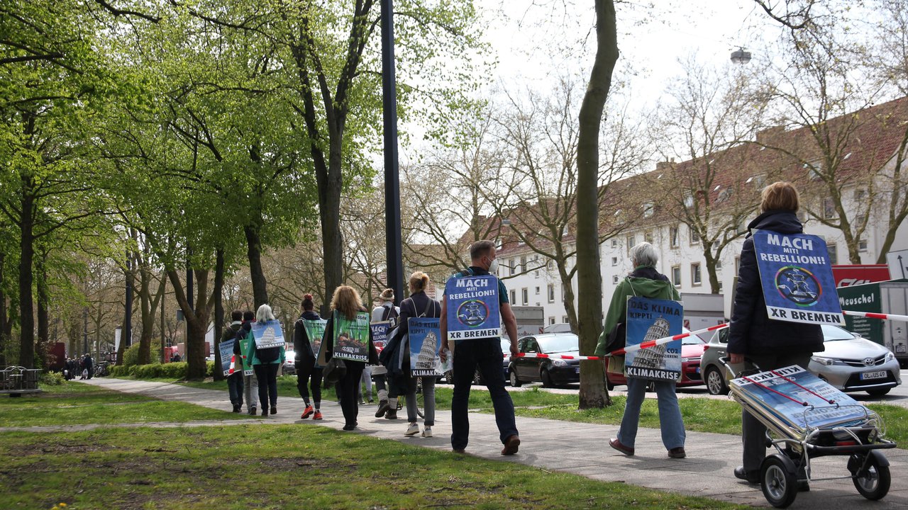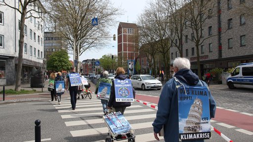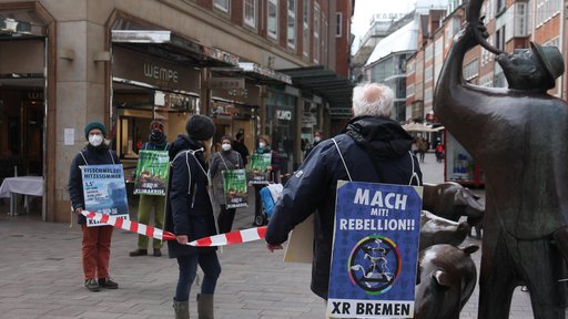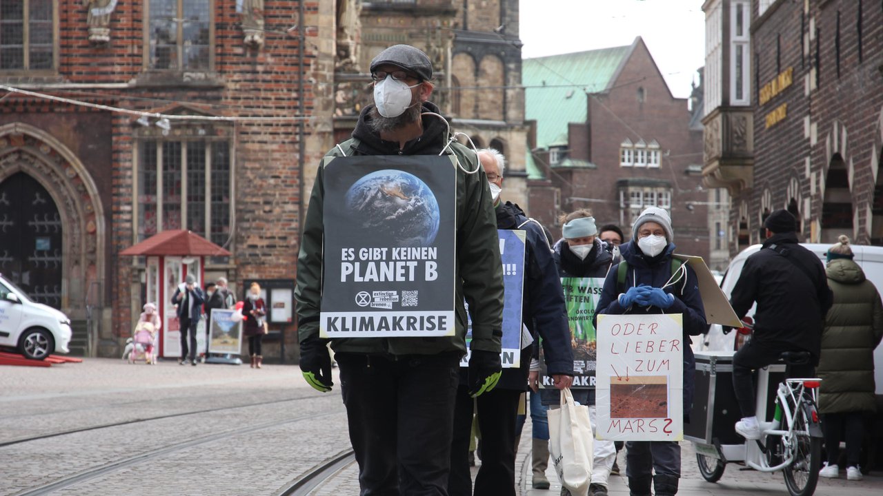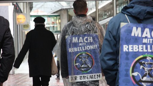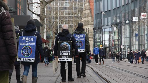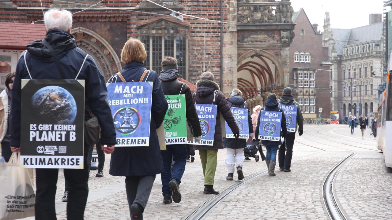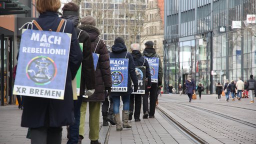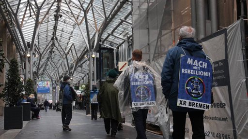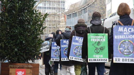 Heute fand die erste Aktion der Gruppe "Klimaspaziergang XR HB" statt. Mit umgehängten sandwiches zog die Gruppe gemessenen Schrittes als Polonaise durch die Innenstadt. Ziel war es Aufmerksamkeit zu erregen, Passanten zu beeindrucken und als XR Ortsgruppe Bremen präsentz zu zeigen. Die Ziele wurden erreicht.