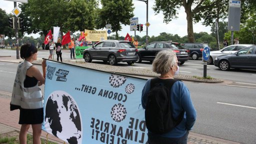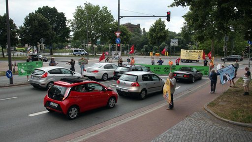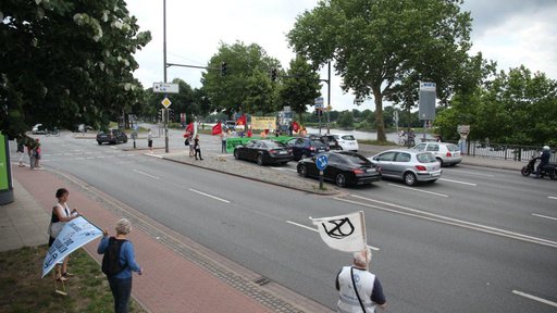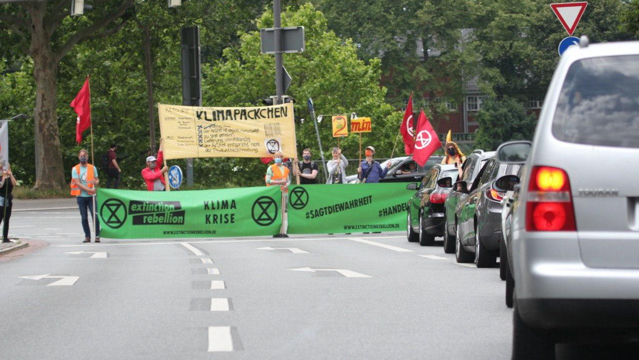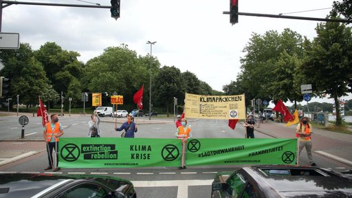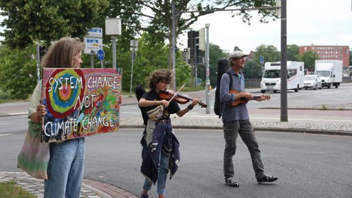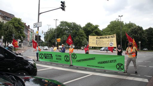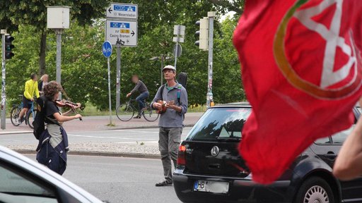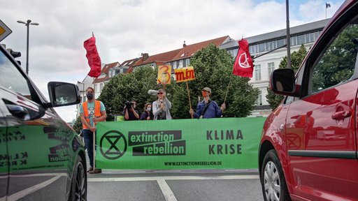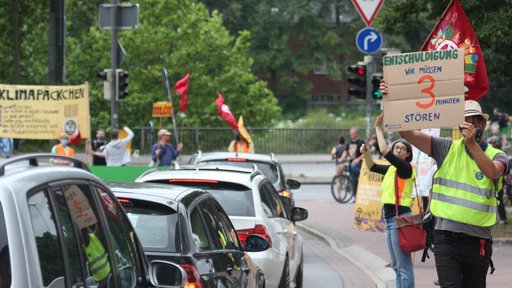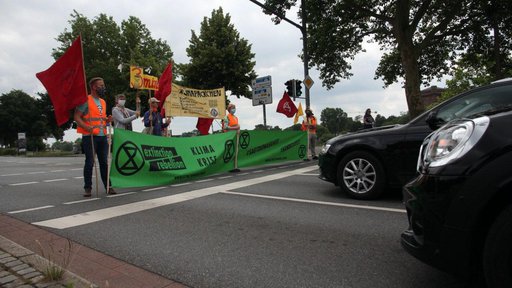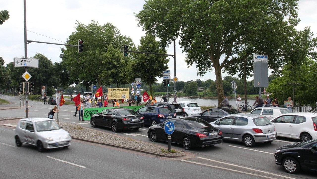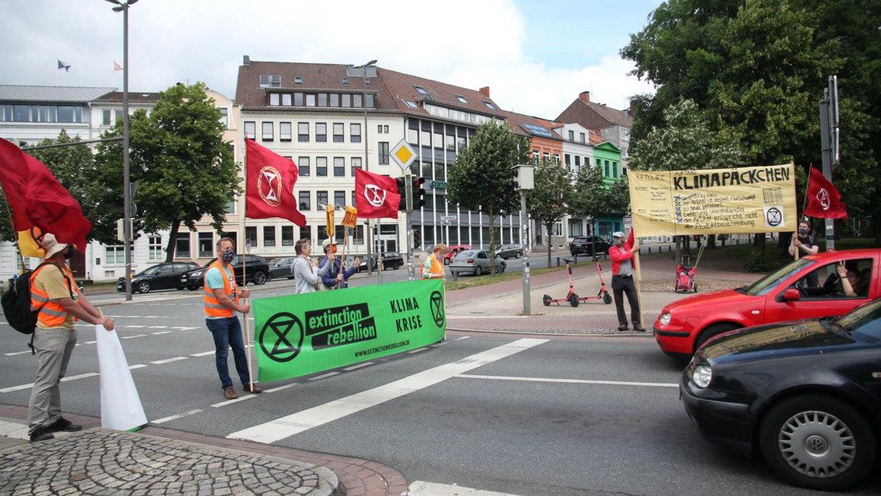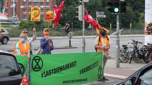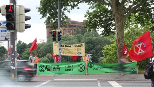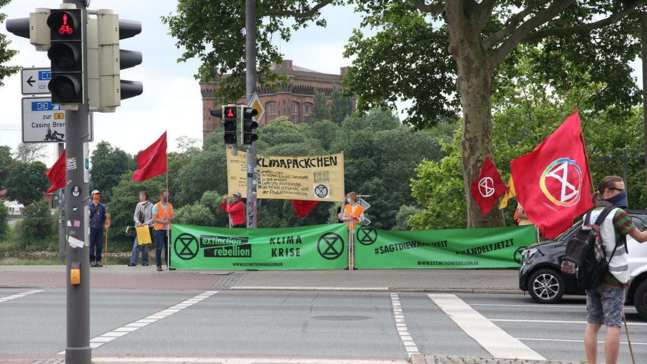 Am Samstag, 20.06. um 11:55 Uhr blockierte XR-Bremen die Kreuzung Osterdeich/Altenwall/Tiefer mit 2 je 4 Meter langen Bannern. Dahinter und an den Straßenseiten wurden den Autofahrenden und Passanten unsere Forderungen und Informationen auf Bannern und Schildern präsentiert. Die Autofahrenden wurden per Schild um Entschuldigung für eine Störung von 3 Minuten gebeten. Nach dieser Zeit wurde der Fußüberweg geräumt und nach kurzer Pause wieder blockiert. So geschah es auf allen drei Straßen.