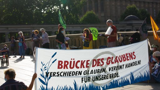 Im Rahmen des AugustRiseUp in Berlin haben wir am 15.8.2021 eine Gehmeditation mit anschließendem interreligösen Ritual auf der Friedrichsbrücke durchgeführt. Der Start war am Marx-Engels-Forum. Die Aktion war mit ca. 60 begeisterten Teilnehmer:innen gut besucht.
