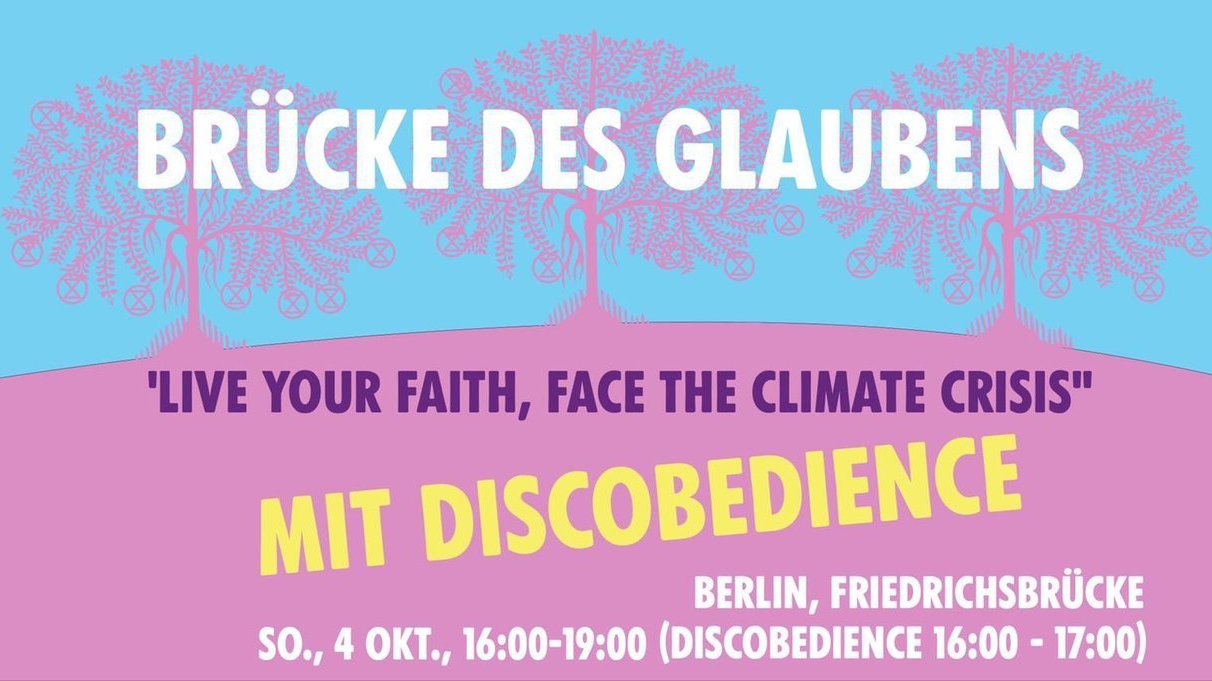 Unter dem Motto "Live your faith, face the climate crisis" ("Lebe deinen Glauben, tritt der Klimakrise entgegen") luden wir auf die Friedrichsbrücke in Berlin ein.