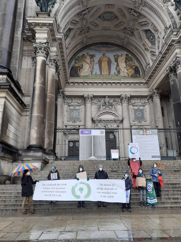Im Rahmen des globalen Aktionstages von „Green Faith“ veranstalteten wir eine Gehmeditation um den Berliner Dom, zu deren Beginn wir auf der Friedrichsbrücke die Glocken des Wiener Stephansdoms läuteten.