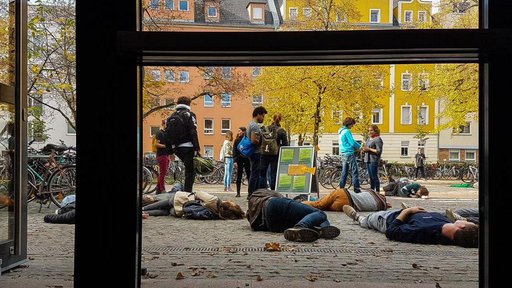 Wir sind zurück! Nachdem wir eine Woche Berlin blockiert haben, sind wir wieder in unserer Heimat Erlangen angekommen und voller Tatendrang. Wir werden nicht zusehen, wie die Politik nichts tut und unsere Zukunft gefährdet. Deshalb haben wir heute am 2. Semestertag die Universitätsmensa in der Innenstadt "gekapert" und mit einem Bannerdrop und einem Die-In auf unsere Situation aufmerksam gemacht.