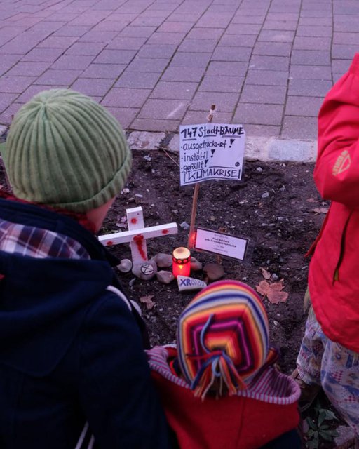 Um Abschied zu nehmen von unseren stillen und treuen Weggefährten haben wir an der Ecke Stubenlohstraße/Feldstraße Gedenkkreuze errichtet. Die Rotdornbäume waren eigentlich noch viel zu jung, um das zeitliche zu segnen.