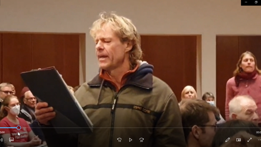 Nach den offiziellen Grußreden haben 6 Sprecher*innen hintereinander eine "Mic-Check"-Rede (mit Vor- und Nachsprechen) gehalten und weitere Aktivisti im Saal, sowie viele sympatisierenden Mitbürger*innen haben mitgesprochen. Beim anschließenden Klimalied und unter viel Beifall, verliessen sie den Saal.
