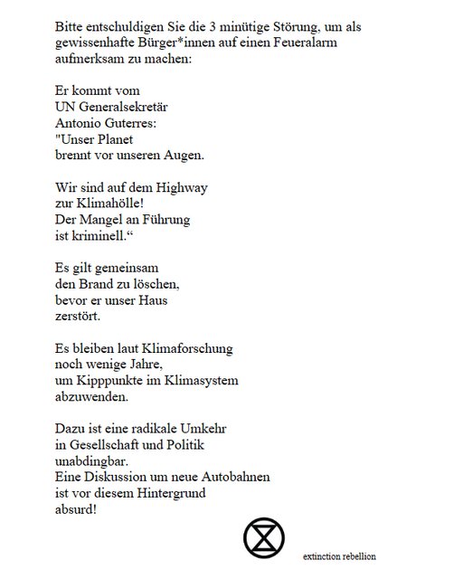 Die Gruppierung fordert einen radikalen Umbau in Gesellschaft und Politik. Eine neue Stadtautobahn ist vor diesem Hintergrund absurd und definitiv nicht mit den Klimazielen vereinbar.