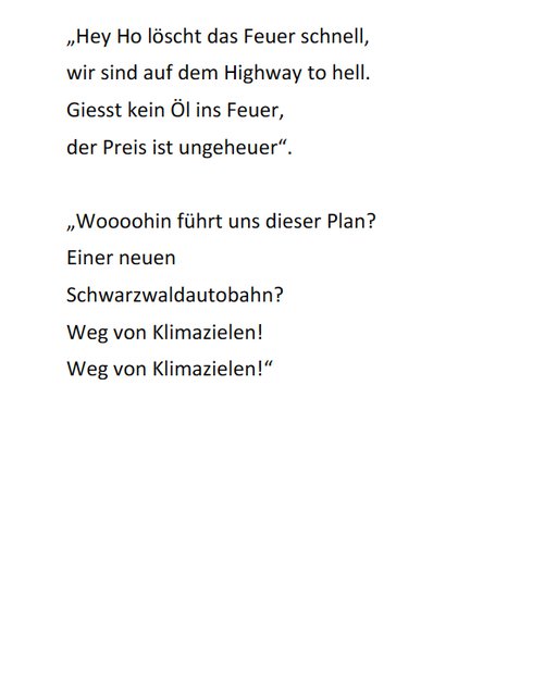 "Wir sind auf dem Highway zur Klimahölle!", so UN Sekretär Antonio Guterres kürzlich. Dieser Satz wurde aufgegriffen und in ein Lied eingebaut, dass die Aktivisti fröhlich sagen, als sie nach der Aktion aus dem Saal geleitet wurden. Du findest den Liedtext und den Text der Mic-Ceck-Rede unten ;)