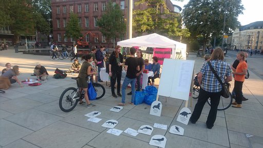 Diese Aktion war so erfolgreich, dass andere Ortsgruppen die Idee aufgriffen. Während der Rebellion in Berlin informierten zwei Mahnwachen Passant:innen und Tourist:innen über Extinction Rebellion, unsere Ziele und Forderungen.