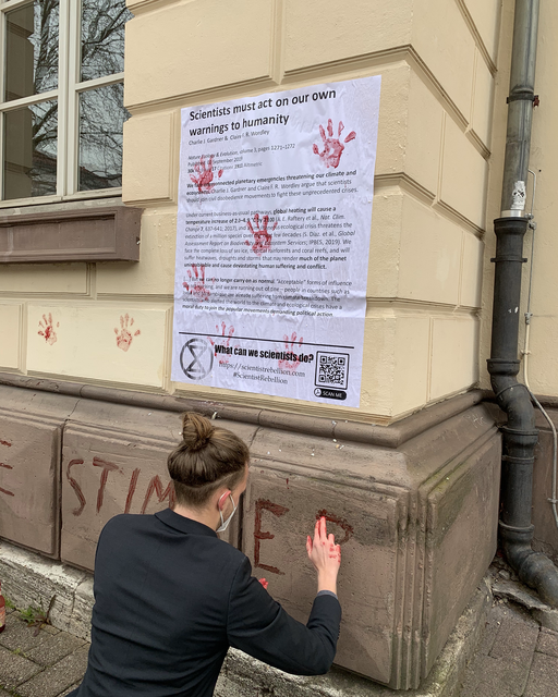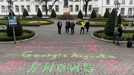 Die Universität hat das Wissen und damit die Verantwortung, öffentlich zu erklären, dass ein nie dagewesener Notfall vorliegt, der unsere Gesellschaft in ihren Grundfesten bedroht. Gleichzeitig wird es höchste Zeit, das eigene Handeln entsprechend dieser wissenschaftlichen Erkenntnisse auszurichten. Professor Metin Tolan, Präsident der Georg-August-Universität Göttingen, suchte während der Protestaktion das Gespräch mit uns. Er erklärte: „Sie müssen mich nicht überzeugen. Ich sehe es genauso wie Sie.“ Als Wissenschaftler könne er gar nicht anders. Allen scheint klar, dass die Zeit drängt, angemessene Taten bleiben aber bisher aus.
