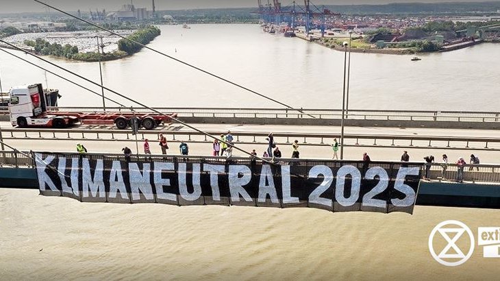 Am 16.6.20 blockierten wir mit den anderen Ortsgruppen des Nordbündis knapp 6 Stunden die Köhlbrandbrücke im Hamburger Hafen. Wir droppten das Banner "Klimaneutral bis 2025" und forderten den Senat auf BürgerInnen Versammlungen einzuberufen.
