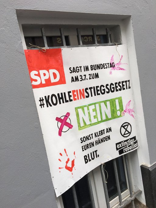 +++ SPD Parteizentrale blockiert +++ Aktivist:innen gegen Kohleausstiegsgesetz +++