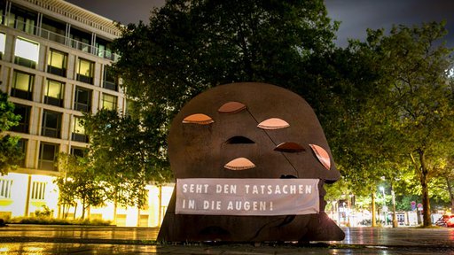 >>> Der Kopf mit zwölf Augen auf dem Georgsplatz hat tatsächlich viel mehr als zwölf Augen – und sieht der Wahrheit, wie wir, doch nicht ins Gesicht. Nun haben die Augen Lider bekommen, die sich öffnen lassen. Dahinter: unbequeme Wahrheiten. »Seht den Tatsachen in die Augen!«
