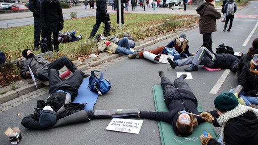 Extinction Rebellion und Ende Gelände blockieren Straße am Umweltministerium in Hannover
