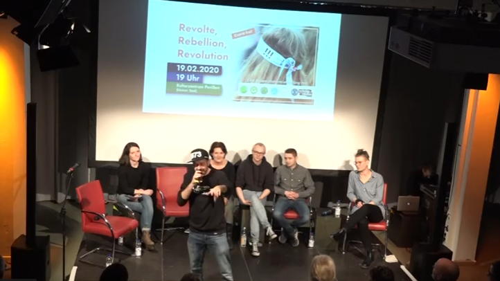 Input bei der Disruption!-Auftaktveranstaltung "Revolte – Rebellion – Revolution: Wie kann die Gesellschaft verändert werden? im Pavillon, 19. Februar 2020.