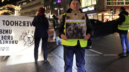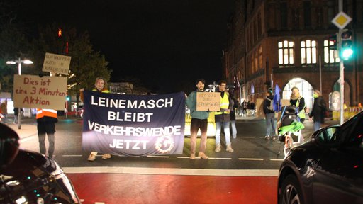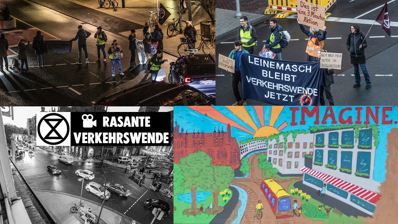 Im November 2022 blockierten Aktivisten von XR Hannover und LeinemaschBleibt eine hektische Kreuzung der Autostadt Hannover. Zwei Stunden lang wurde der Verkehr auf der Kreuzung Karmarsch- /Schmiede-/ Marktstraße immer wieder gestoppt, Flyer verteilt und Passanten und Autofahrer*innen angesprochen. Unsere Forderungen: eine rasante Verkehrswende einleiten und den unangemessenen Ausbau des Südschnellwegs stoppen. Die HAZ titelte im Nachgang: „Klimaschützer blockieren Straße in Hannovers City – Hupkonzerte und Beschimpfungen“ und schrieb weiter: „insgesamt aber blieb die Situation friedlich.“
