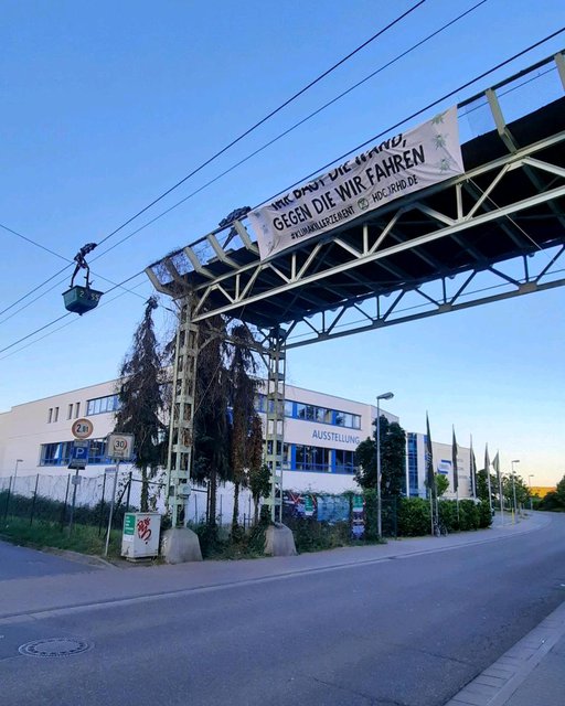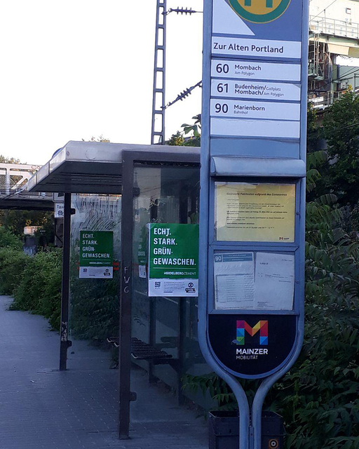Auch in Mainz steht ein riesiges Zementwerk von HeidelbergCement. Deshalb hat die Ortsgruppe auch dort Bannern ehrliche Werbeplakate aufgehängt.