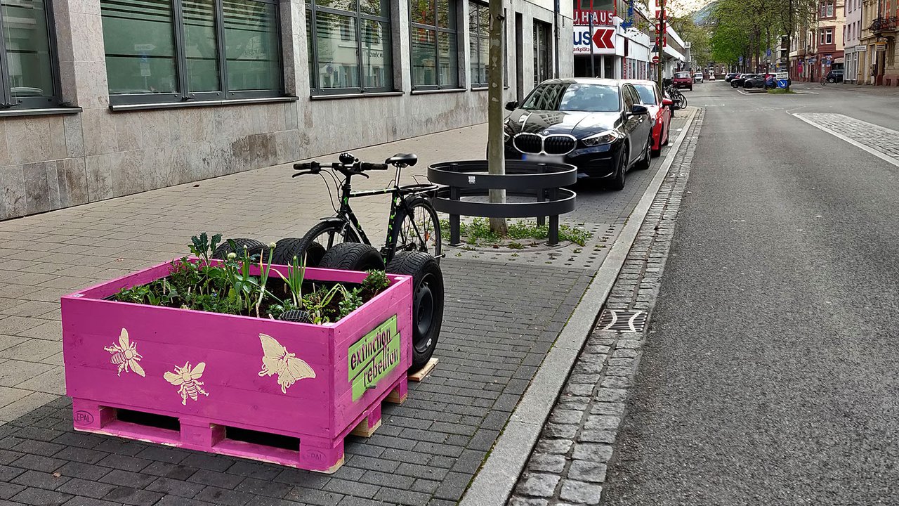 In einer Nacht- und Nebelaktion haben wir am 13. April 2020 zwei Parkplätze in der Heidelberger Innenstadt mit pinken Hochbeeten in kleine Parkanlagen verwandelt. In der Brückenstraße und der Bahnhofstraße sind die beiden Konstruktionen zu bewundern und freuen sich über Wasser und Pflege. Die Pflanzkästen sind Teil einer deutschlandweiten XR-Osteraktion – macht gern Fotos und teilt sie mit uns allen unter dem Hashtag #Platzpark!