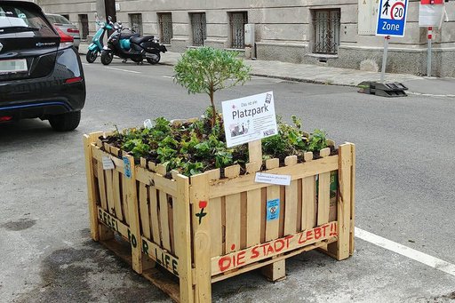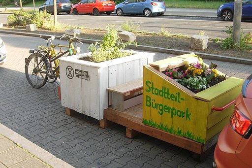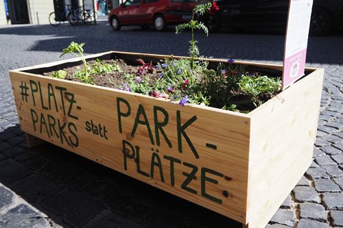 Unsere Hochbeete sind zudem mit einfachen Fahrradständern ausgestattet, um eine nachhaltige und gesunde Fortbewegung im urbanen Raum anzuregen. Da die StVO eine Nutzung regulärer Parkplätze auch für (ausreichend sichtbar) geparkte Fahrräder vorsieht, hoffen wir, dass die Fläche in den Augen der Stadt nicht zweckentfremdet ist und die Platzparks bestehen bleiben :)