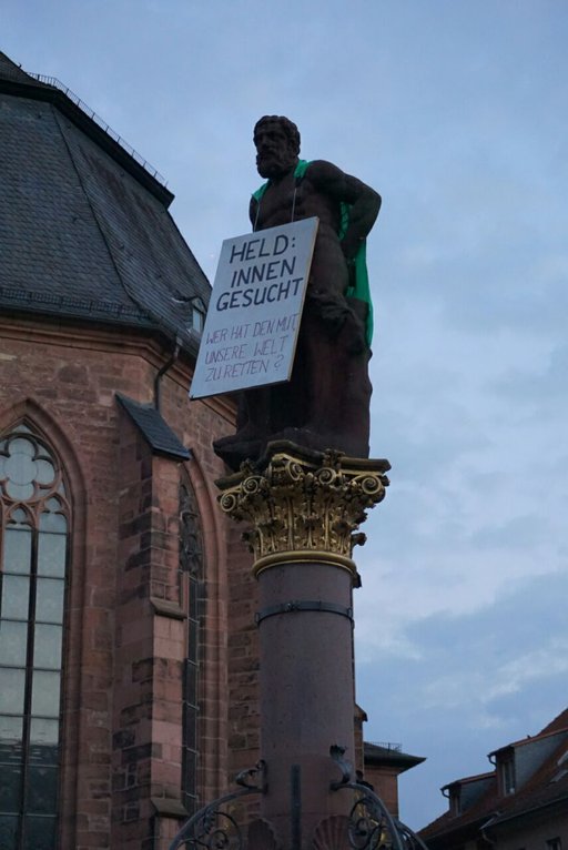 Gemeinsam mit FridaysForFuture Heidelberg haben wir in der Nacht vom 17. auf den 18. Juli 2020 einige Statuen in Heidelberg verschönert um zu zeigen: Die Klimakrise ist immer noch da und die Zeit läuft...