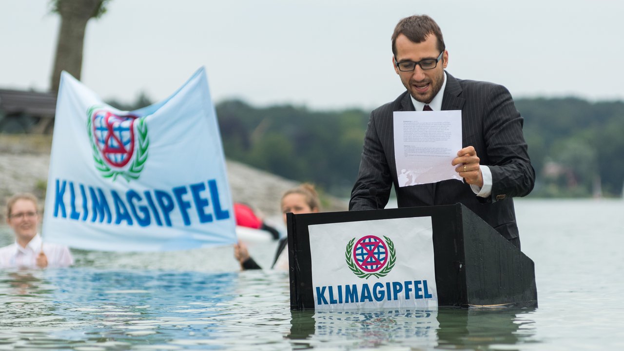 Montag 15.06.2020 - Die UN-Klimakonferenz 2020 in Glasgow fällt aus, aber wir haben den Klimagipfel an den Bodensee geholt. Am Hafen wurde der rote Teppich ausgerollt. Politiker:innen diskutierten über Maßnahmen gegen die Klimakrise, während ihnen bereits das Wasser bis zum Hals stand. Leider blieb der Klimagipfel wieder ergebnislos, notwendiges wurde verschoben.