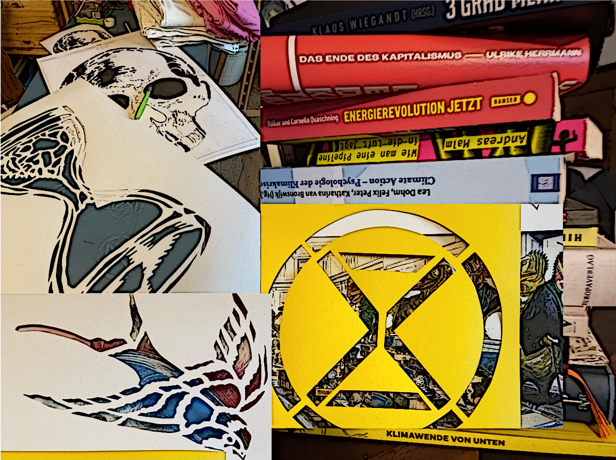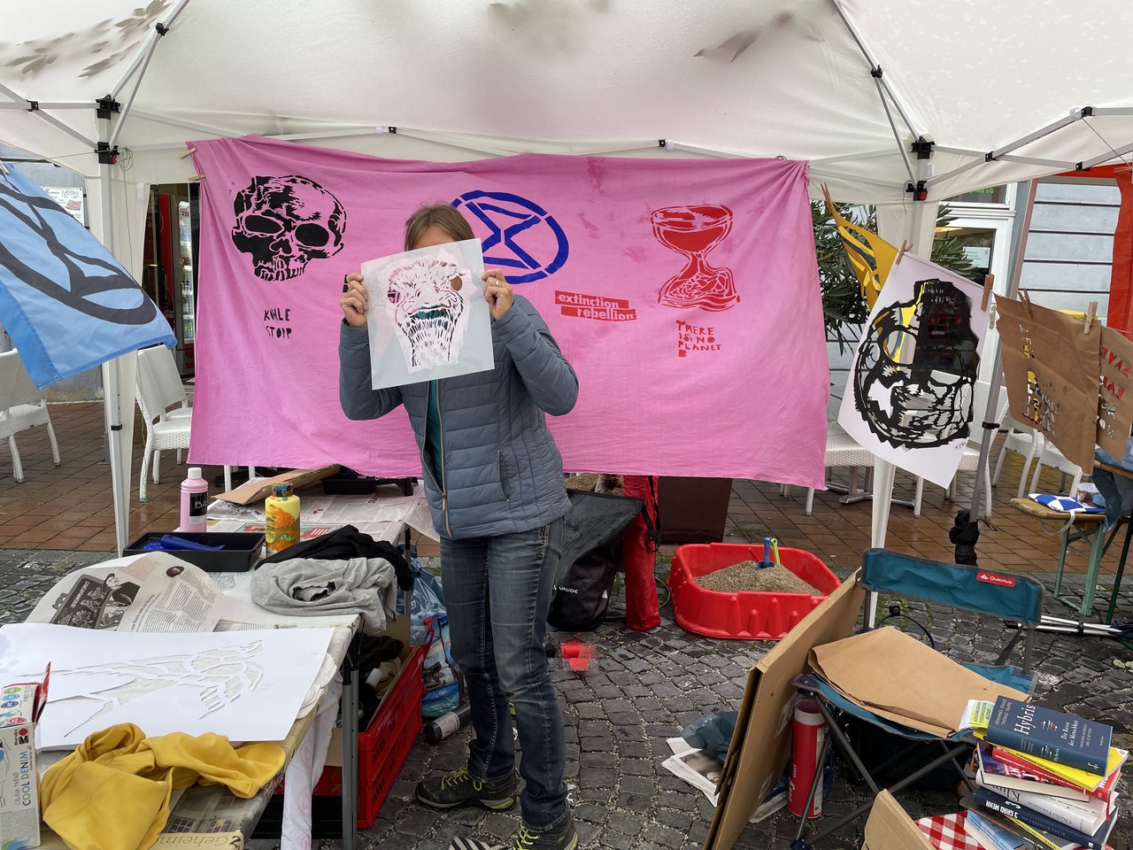 Wir hatten beim Stencil Workshop viel Spaß beim bemalen und bedrucken von T-Shirts und Bannern.