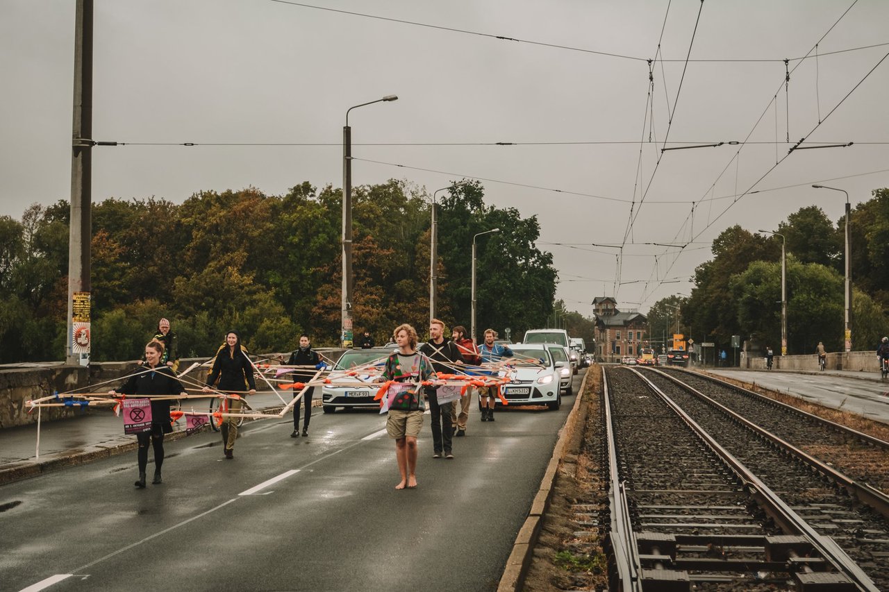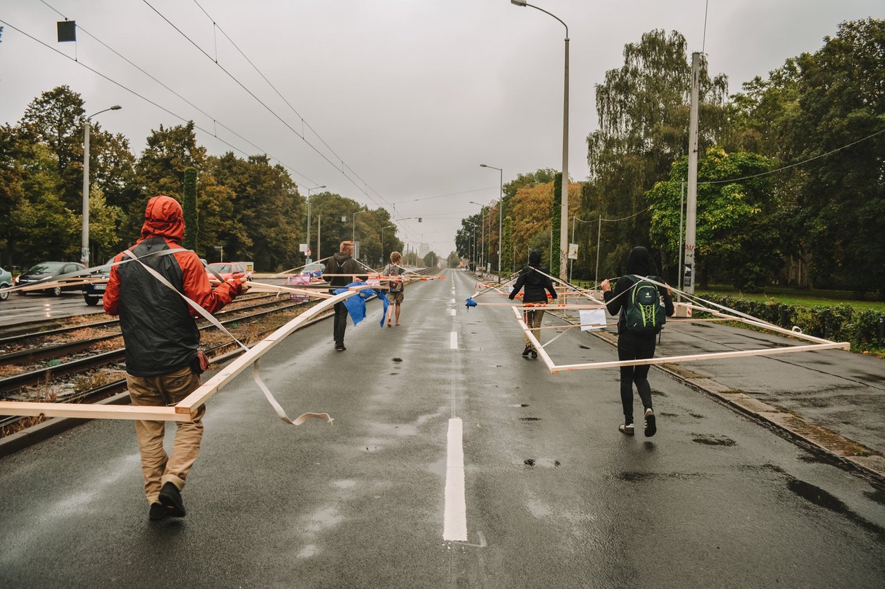 Am 16. September haben wir die Jahnallee blockiert. Unsere Gehzeuge zeigen eindrücklich, wie Autos uns den Raum in der Stadt wegnehmen. Sie verpesten die Luft, verheizen das Klima und damit unsere Zukunft. Wir sind der Sand im Getriebe. ;)