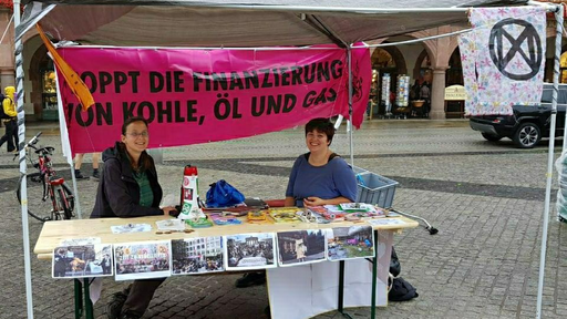 🏦 Mai: Am 19.05., dem Tag der Hauptversammlung der Deutschen Bank, haben wir mit einer Kundgebung erneut auf den Schaden durch ihre fossilen Investments aufmerksam gemacht. Im Mittelpunkt stand das Pipeline-Projekt #stopEACOP, das der Total-Konzern in Ostafrika umsetzen will. Mit einer Kunstöl-Pipeline wurde die Verschmutzung in der Leipziger Innenstadt sichtbar gemacht.