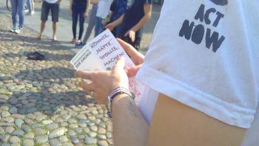Falls eine aktive Teilnahme für dich leider nicht in Frage kommt, ist es vielleicht eine Option, uns durch eine Spende zu unterstützen. Selbstverständlich bezieht niemand von uns für sein Engagement Geld, aber Aktionen und auch andere Veranstaltungen sind immer auch mit Kosten verbunden. Bei unserem traditionell eher leeren Konto eröffnet uns jede Spende neue Möglichkeiten für starke und wirkungsvolle Aktionen! Klicke dazu oben auf den Reiter „Spenden“.