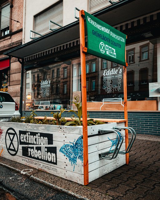 Da die StVO eine Nutzung regulärer Parkplätze auch fßr (ausreichend sichtbar) geparkte Fahrräder vorsieht, sehen sehen wir den Platzpark nicht als zweckentfremdet. Wir fordern die Stadt auf ihn bestehen zu lassen. Er solle als Mahnmal dienen, die Verkehrswende voranzutreiben.