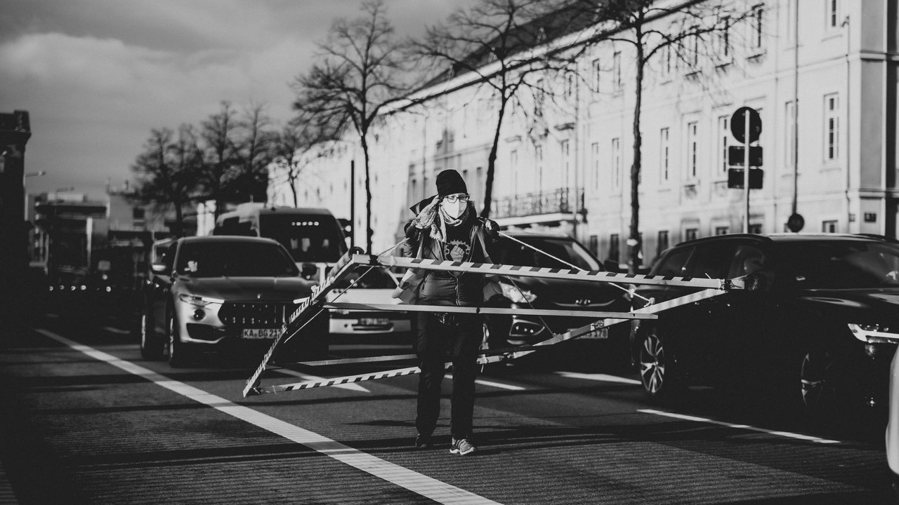 Während die Blockade um 13 Uhr begann, hatten bereits in der Nacht unbekannte Personen zusätzliche Zebrastreifen in der Innenstadt angebracht.