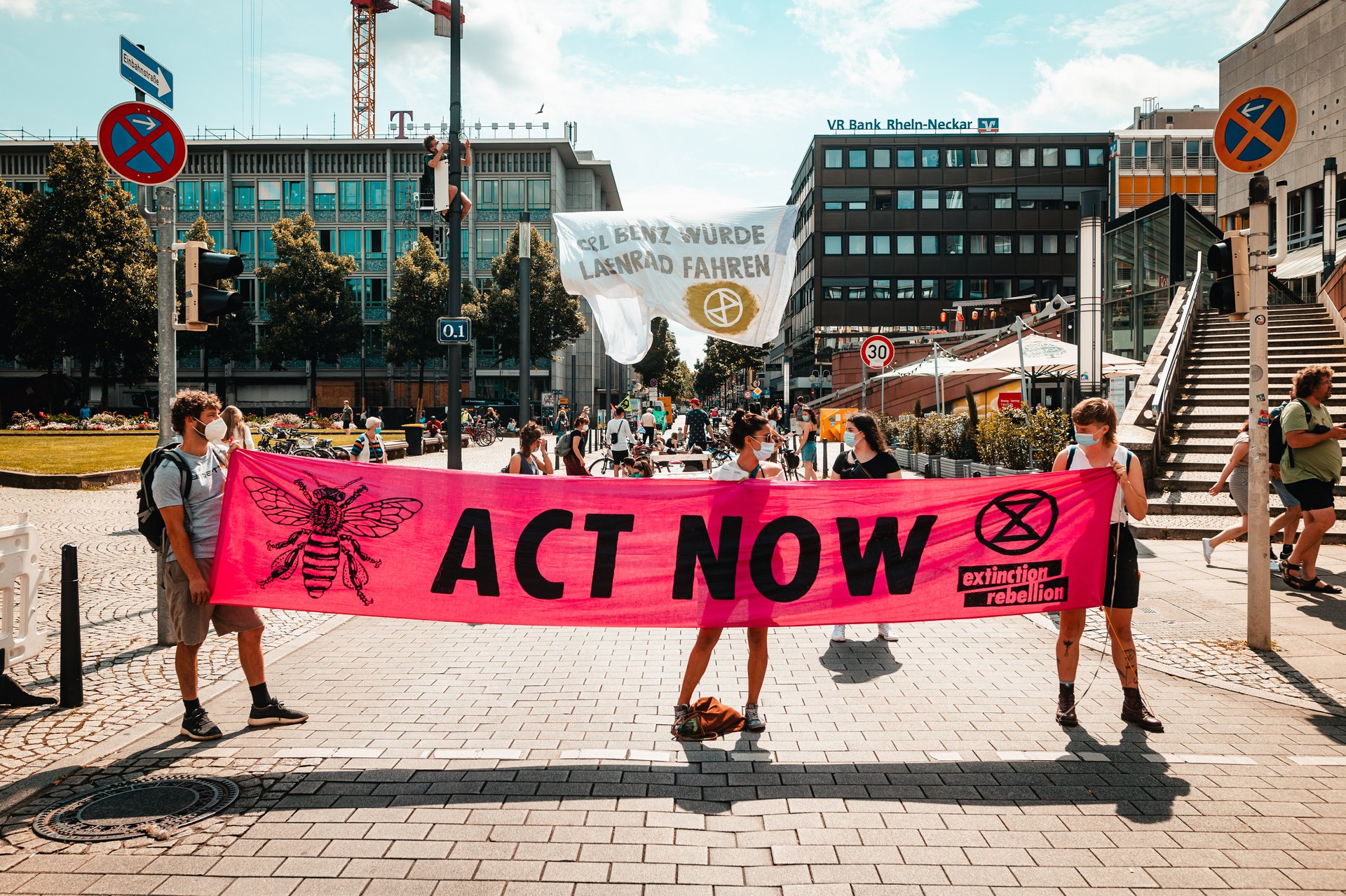 Mit Aktivisti aus Mannheim, Heidelberg und sogar Karlsruhe setzten wir uns auf die Straße, einige besonders mutige ketteten sich sogar an das Auto oder kletterten auf Laternen.